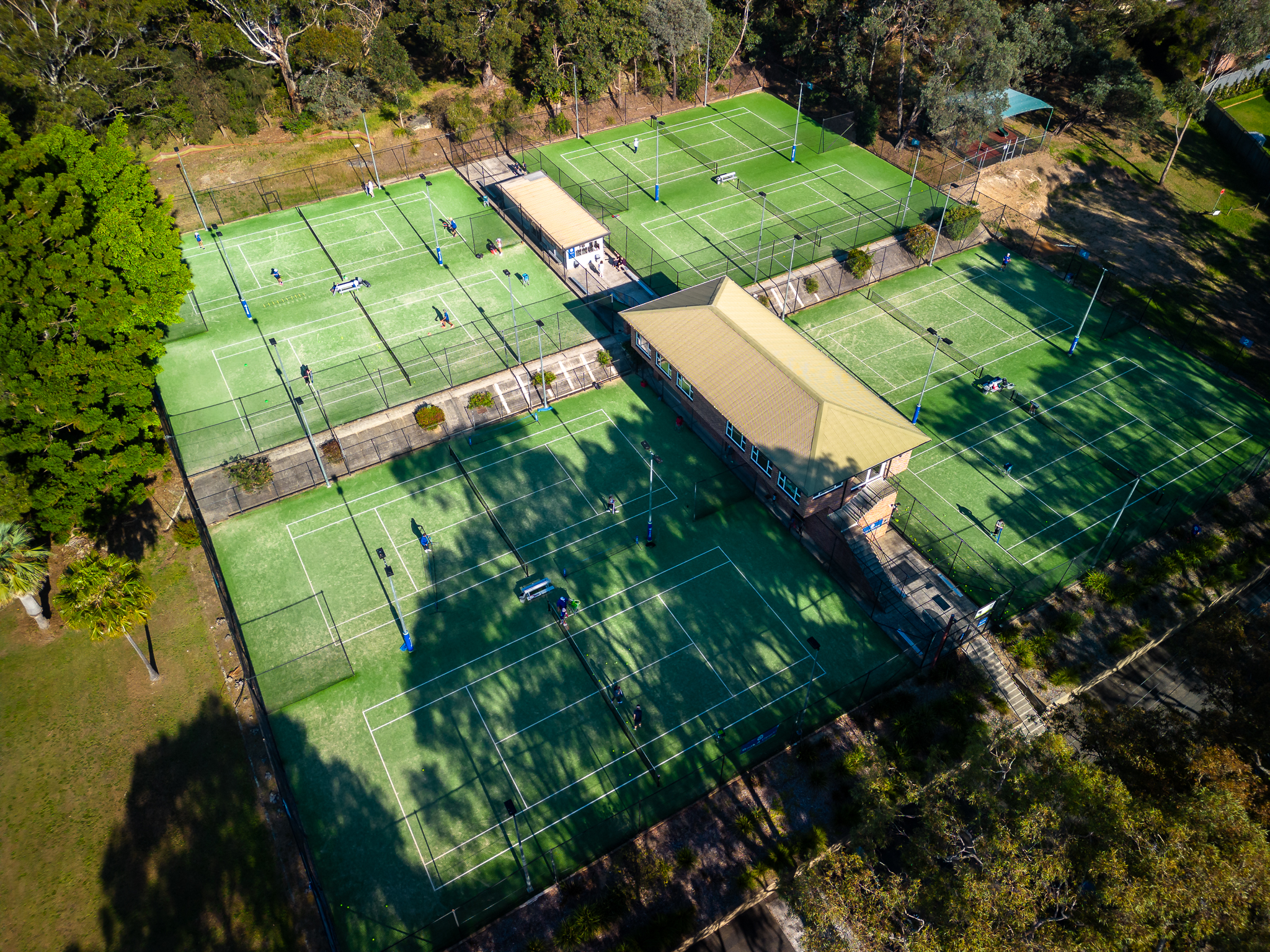 | Facilities: | 8 synthetic grass tennis courts with lights (resurfaced Nov 2022) Changerooms and bathrooms in clubhouse Venue hire Restringing service available Click here to HIRE A TENNIS COURT |